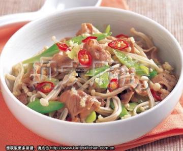 肥牛肉片8片,金针菇1/4包,鲜冬菇2只,胡萝卜1/3条,湿粉丝120克。