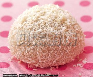 4、把包好的糯米球在椰蓉上滚圆,即可。
