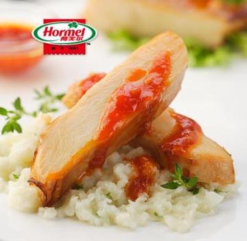 烟熏鸡胸1片,姜末10g,洋葱粒30g,番茄辣椒酱3汤匙(45ml),绍酒1茶匙(5ml),细砂糖 2茶匙(10g),土豆泥150g