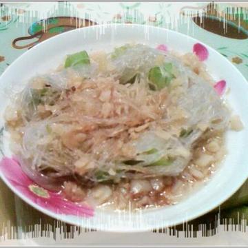 这道菜味道很清淡,吃的时候让丝瓜块儿粘着粉丝上面的蒜吃,味道很好。