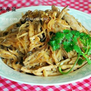 金针菇,真姬菇,肉丝,粉丝,料酒,盐,豆瓣酱
