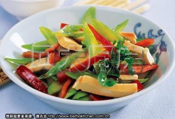 2、还可用北方常见的熏干来代替白豆腐干烹调,令菜肴味道更加多样。