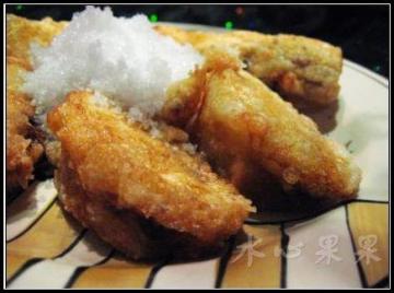 5,油锅6成热时,把苹果下锅炸到两面金黄即可