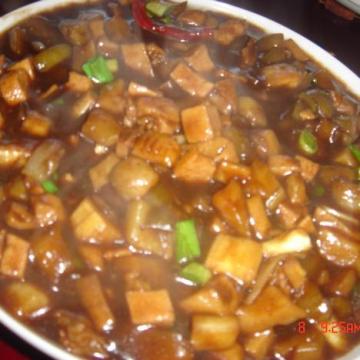 4、然后加入甜面酱,再加入少量水,盖锅焖煮,约5分钟后开锅,调味,勾上水淀粉,撒上葱花即可。
