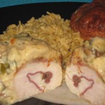 去皮无骨鸡胸肉4块,烟肉4片,干牛肉112克,酸奶油230克,罐装浓缩奶油鸡汤300克