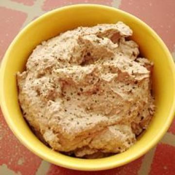 (4)最后把鸡肝打成泥状,加入鲜奶油及少许盐、胡椒粉拌匀即可。