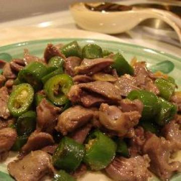 第一种:美食美味的青椒煸鸡杂做法