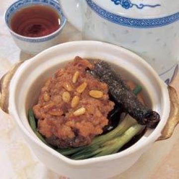 松子仁40克,乌鸡1只,约900克,猪里脊肉(猪柳)240克,花生油480毫升(炸鸡肉用),生姜4片,大葱2根,高汤480毫升,太白粉(生粉)1茶匙,麻油1茶匙,酱油3汤匙,糖1茶匙,胡椒粉适量,腌料︰,盐1/4茶匙,糖1/4茶匙,酱油1茶匙,绍酒1茶匙,太白粉(生粉)1茶匙