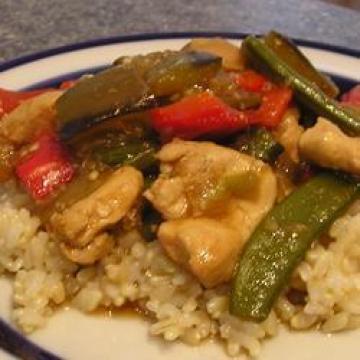 1.茄子去杆切成2.5厘米的方块。用中碗将酱油、鸡汤、辣酱、糖、黑胡椒和蚝油调匀备用。另取一个小碗,调和好玉米淀粉和水,备用。