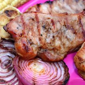 3.在烤肉删格上抹少许油。将猪排每一面烤5-6分钟, 或依个人喜好烤几分熟都可以。