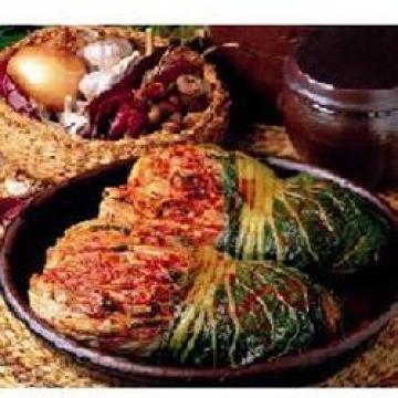 2.将白菜叶上多余的盐冲掉,然后挤出多余的水分。把白菜叶放到一个带紧盖的罐头里。倒入鱼露、葱、洋葱、蒜、糖和姜。再撒上辣粉。带上塑料手套以便保护手,然后将辣粉均匀的揉到白菜叶里。盖上盖子放到一个阴凉干燥的地方4天。食用前放入冰箱。可以存在冰箱一个月之久(如果到时候还没吃完的话)