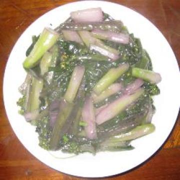 4.最后把油菜倒进锅里翻炒,加盐,出锅!