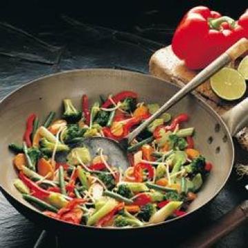 胡萝卜2根,绿花菜(西兰花)225克,红甜椒1个,嫩菜豆225克,大葱50克,大蒜2瓣,菜油2汤匙,麻油4汤匙,青辣椒1根(不用亦可),蚝油3汤匙,豆芽175克,淡酱油1汤匙,糖1汤匙,莱姆(青柠)1个挤汁,盐、现磨白胡椒适量