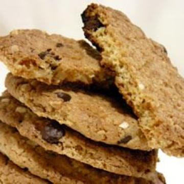 起酥油100克,白糖100克,袋装红糖110克,鸡蛋1只,香草精3毫升,面粉125克,烘焙粉2克,烘焙苏打2克,盐3克,麦片60克,椰丝35克(可选择),迷你少甜巧克力豆100克(可选择)