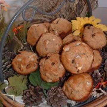 蛋白2个,全麦面粉240克,发酵粉1汤匙,盐1/2茶匙,肉桂粉1茶匙,脱脂牛奶170毫升,植物油4汤匙,蜂蜜4汤匙,苹果110克,切成小块