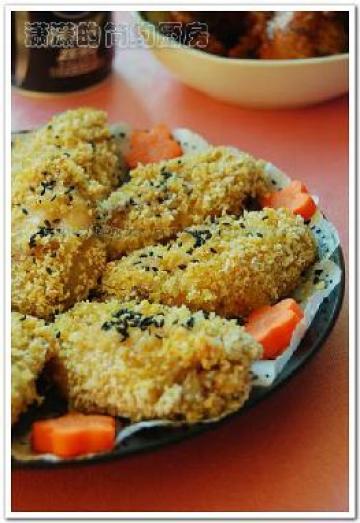 3、面包糠在大型超市的调料柜通常都可以买到,如果没有,可以用粘淀粉代替,不过口感没有那么酥脆了;