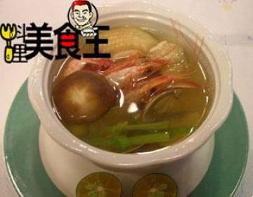 相关菜谱名称推荐:土瓶蒸,材料:鸡腿肉160克,生香菇4朶,鱼板80克,虾子8尾,蛤蜊8颗,罐头白果8颗,芹菜40克,金桔4颗,柴鱼高汤1000cc,做法:,做法: