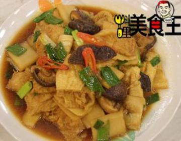 第二种:美食美味的材料:豆包6片,冬菇6朵,笋半根,红辣椒1根,青葱3根,高汤1小碗做法