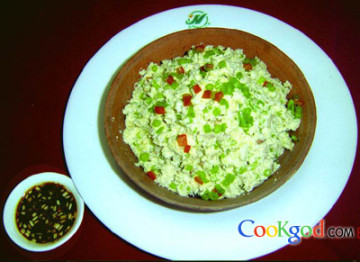 炒制时间不要太长,猪大油质量要好,以保证豆腐渣净白,颜色鲜亮。