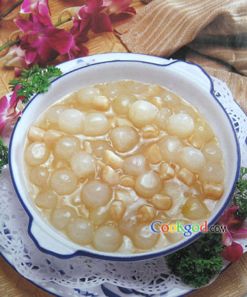用料主料:冬瓜球500克、水发干贝70克调料:鸡汤、盐、味精、料酒、鸡粉、粉团、葱油