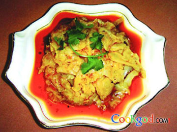 3、将海蜇头装盘淋上2中的汁和红油即可。