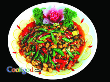 辣香浓郁、肉质软嫩,双椒味浓,色彩对比强烈。