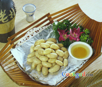 1、将鸡子洗净放在窝里,加入姜汁酒、精盐,拌匀上蒸笼蒸熟取出,滤清水分,然后放味精、沙姜粉、麻油,捞匀用锡纸包好备用。