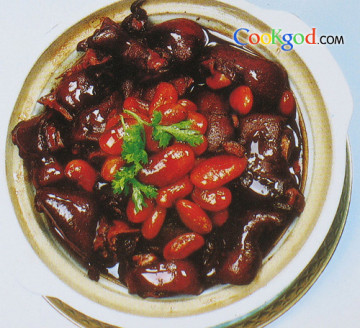 猪蹄3只 干黄豆100克 姜一大块 盐1茶匙(5克)清水2500ml 枸杞随意