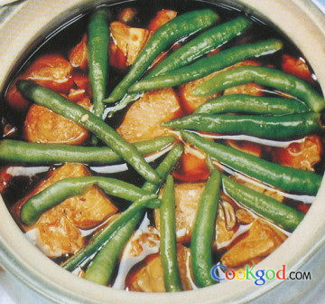 2、沙锅上火,加人熟猪油、豆腐、草菇、香菇、肉皮、鱼子酱、蚝油、鲍鱼酱、桂皮、八角、香叶、尖椒,加高汤炖制约2小时,待豆腐起孔入味,放精盐、味精调味即可。