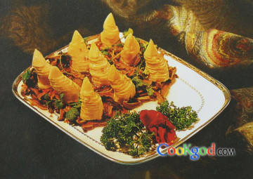 红球吐焰、香菇盒、枣煨鞭花、皱纱南瓜苞