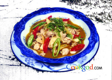 主料:火鸡400克,鞭笋50克。调料:蒜子(即蒜瓣)30克,青红椒段各20克,香菜10克,葱末、姜片各5克,菜子油25克,高汤250克,味精、盐各6克,胡椒粉8克。