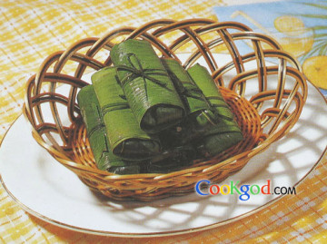 5.将作法4的竹叶排骨放入蒸笼内,以大火蒸约40分钟后取出,打开竹叶即可食用。