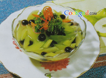 珍珠、情人果、相思豆各50克调料糖、味精、香芹、萝卜丝各少许