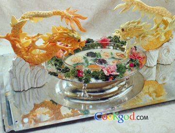 彩灯戏乌龙、福禄一生、三色血燕狮子头、满载而归、豆蓉麦香鹅肝球