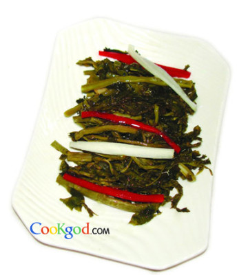 山蛰菜80克,泡红辣椒10克,泡萝卜20克。调料盐3克,味精3克,香油10克,红油5克,老干妈酱10克。