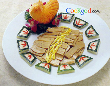 (5)食用前,先除去叶包和姜片,调入味精和盐。