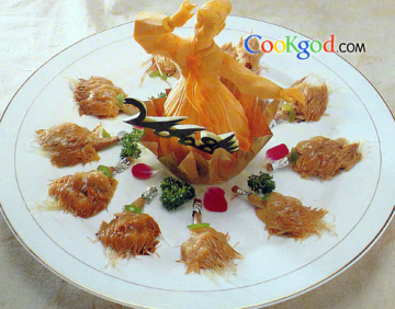 如果嫌拉糖丝的步骤过于复杂,或平时需要快速完成这道菜肴的制作,可以省略糖丝装饰,只需要在调味汁中稍稍多加一些白砂糖即可。