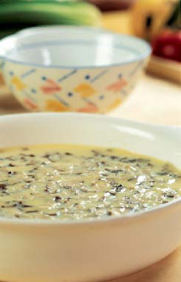 (2)(1)料用滤网滤过,将香菇切丁,加入滤过的蛋汁,放入锅中蒸10分钟后取出。