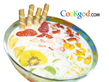 水果捞,即fruitymixed,就是把几种水果混合在一起,用叉子捞着来吃的意思。美女厨神――jean做的水果西米捞色香味俱全,用了草莓、芒果、奇异果和青枣四种水果,配上晶莹剔透的西米露和牛奶,香浓扑鼻的水果味诱得人口水直流…… 材料草莓(7个)、吕宋芒(4个)、奇异果(1个)、青枣(6个)、牛奶(2盒)、西米露(3两)、饼干(4根)、白糖(8汤匙)