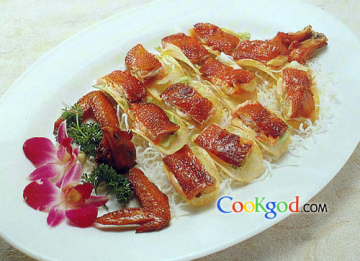 此菜选用特制奇妙芥酱,味道特别鲜美,配薯片及生莱叶,融合了传统中菜和西餐风味。