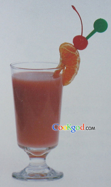 配方:热红茶1杯,糖水1盎司,红石榴汁1/4盎刊,葡萄汁1/2盎司,可尔必斯1盎司,冰块1杯