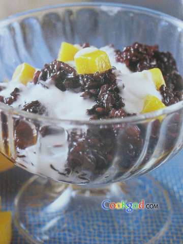 相关菜谱名称推荐:椰汁黑糯米,椰汁黑糯米,营养加倍的芒果椰汁黑糯米,芒果椰汁黑糯米
