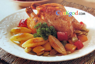 (5)蔬菜置于碟上,加上烤鸡,即可配以黄汁一同享用。