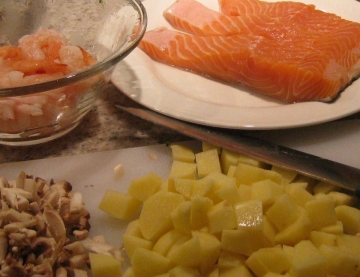 1.土豆去皮后切滚刀;鸡腿洗干净后斩件,用姜片、盐(一点点就够)、生粉、白糖、生抽拌匀腌10分钟以上,蒜头与豆豉剁成末