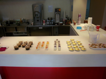4.右边第二的是焦糖布丁,将牛奶糖烧烫后冲到拌匀的鸡蛋和蛋黄液中,烤160度,20分钟。