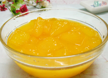 步骤3:放入冰箱冷藏2小时后,让冬瓜充分吸收果珍汁。你别看这是冬瓜做出来的菜,其实味道非常好,冬瓜的口感有点象黄桃,你很难吃出是冬瓜的味道。
