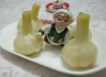 将大蒜切去根、须,蒜茎可留半指长,放入缸内用清水浸泡7天,每天换一次水,把蒜的辣味泡出,然后再腌制。下缸时要一层蒜一层精盐,一天翻一次,4天后捞出晒干。一般先把蒜皮撕去再腌。把精盐放在水中化开,加糖、醋煮沸晾凉后,再倒入蒜缸内。盐水要把蒜盖住,密封,存放3个月即成。如制作糖蒜数量较多时,用小满前后的白皮蒜最好,紫皮蒜辣味大,破皮易烂,且要防止雨水、生水进入腌缸内。