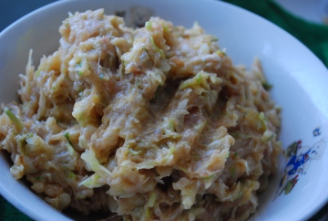 注:肉馅的都要先拌肉馅,材料即是:葱末,姜末,生抽,油,花椒面,拌好后,加入菜馅子,加盐,鸡精搅拌均匀就可以了。