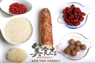 枸杞子10克,龙眼肉12克,山药12克,大米200克,清水500克。