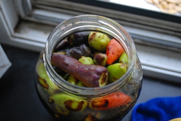 1、辣椒洗干净,放罐子里面,一层盐,一层辣椒。